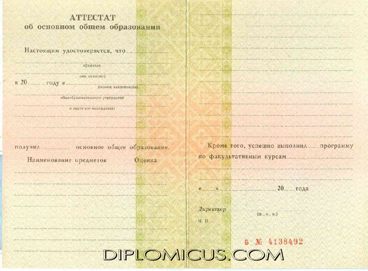 Аттестат о среднем образовании за 9 класс <br /> 1994-2006