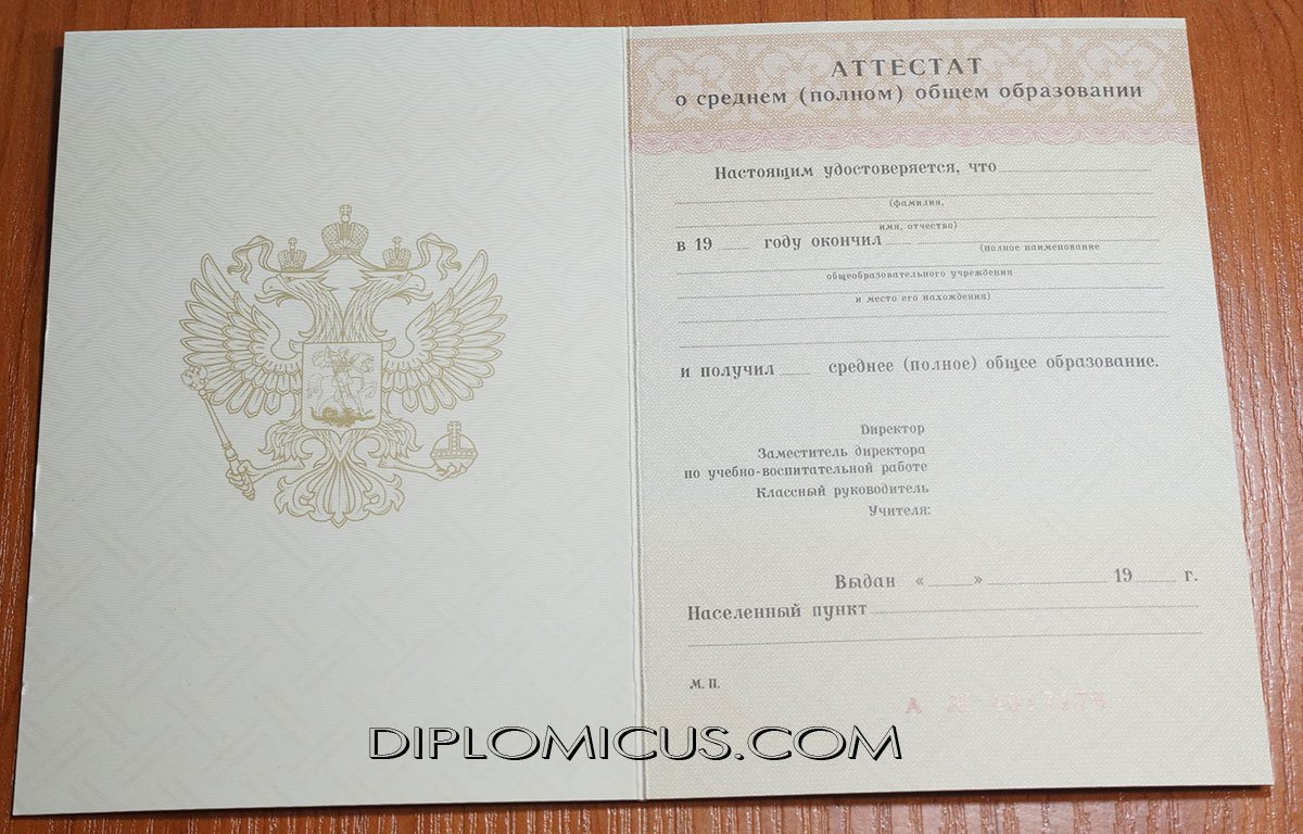 Аттестат о среднем образовании – это специальный документ, который выдается каждому ученику после окончания девятого или одиннадцатого класса школы. Данный диплом подтверждает тот факт, что Вы закончили среднюю общеобразовательную программу и получили соответствующие навыки и знания. Данный документ, который изготавливает наша компания, отвечает всем требованиям, которые установлены Министерством образования, а именно: